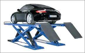Surface scissor lifts of the MLP series are primarily characterized by an extremely flat design. The ascending height is merely 120 mm at a capacity of 3000 kg. due to the practice-oriented equipment, MLPscissor lifts are especially suited for the receiving area. the two at versions meet the requirements for axle measuring.